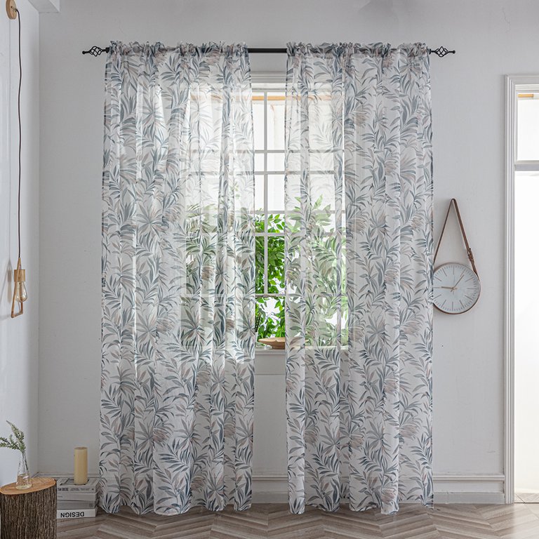 Yipa Tulle Semi Transparent Curtain Drapes Light Filtering Bedroom Leaf Printed Window Treatment Sheer Grommet Top Living Room Curtains Walmart Com